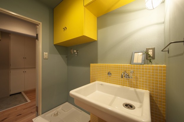 水廻りはカラーで遊び、ポップながら品がよくてかわいらしい